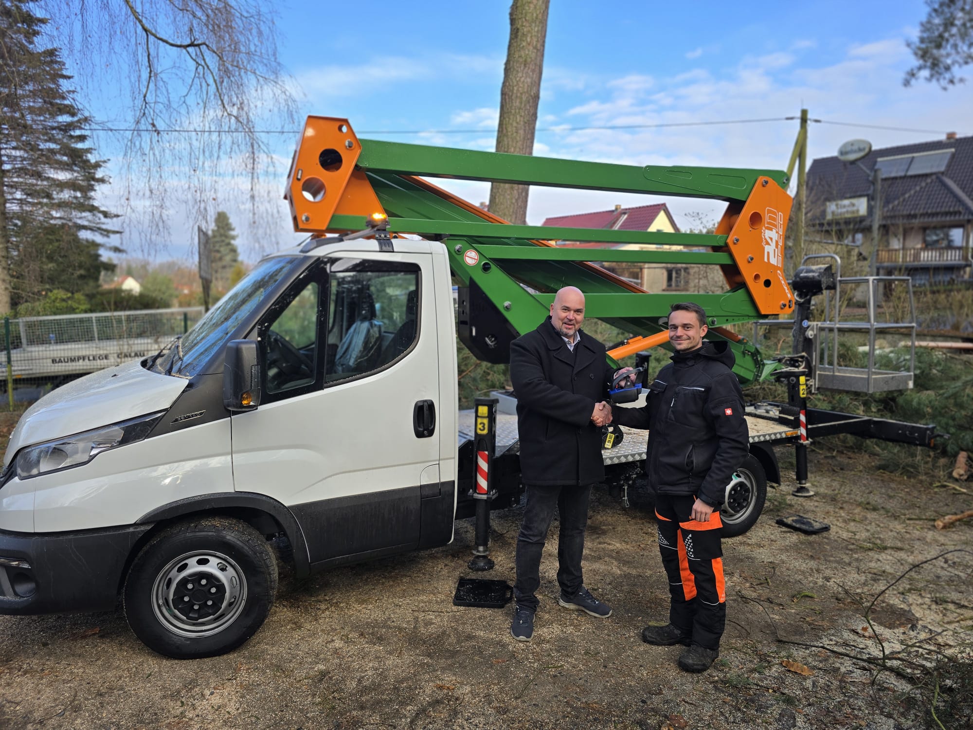 Es ist soweit: Ein weiterer großer Schritt in unserer Firmengeschichte ist getan. Wir durften unsere erste eigene Arbeitsbühne in Empfang nehmen! Wer uns in der Lausitz sieht, wird uns jetzt noch schneller erkennen, denn die SOCAGE 24D strahlt ab sofort stolz in unseren Firmenfarben.